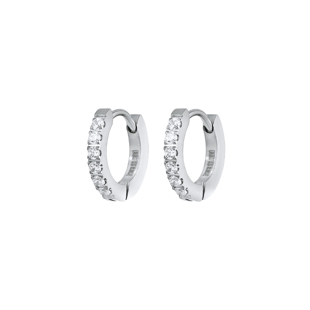 Crown Huggie Earring in silver with clear stones