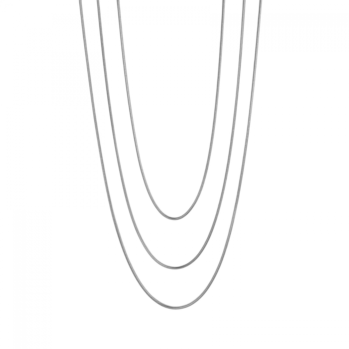 Three chains in one – this sleek, layered necklace features soft snake chains that fall beautifully for an effortlessly chic look. Perfect for creating a stylish layered effect in a single piece.