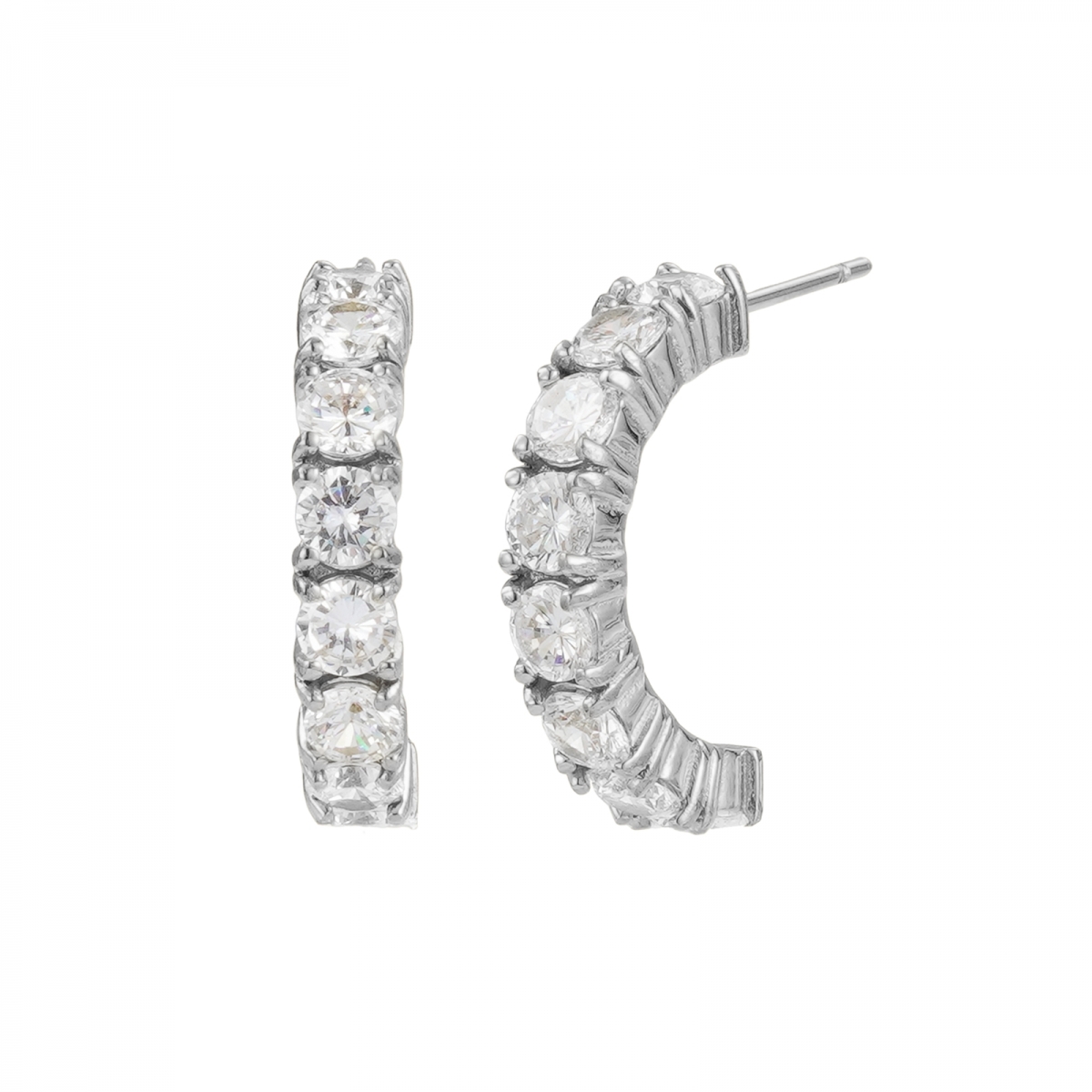 Timeless sparkle. These hoops are set with Cubic Zirconia for a clean, refined look. A perfect balance of shine, sophistication and luxury!