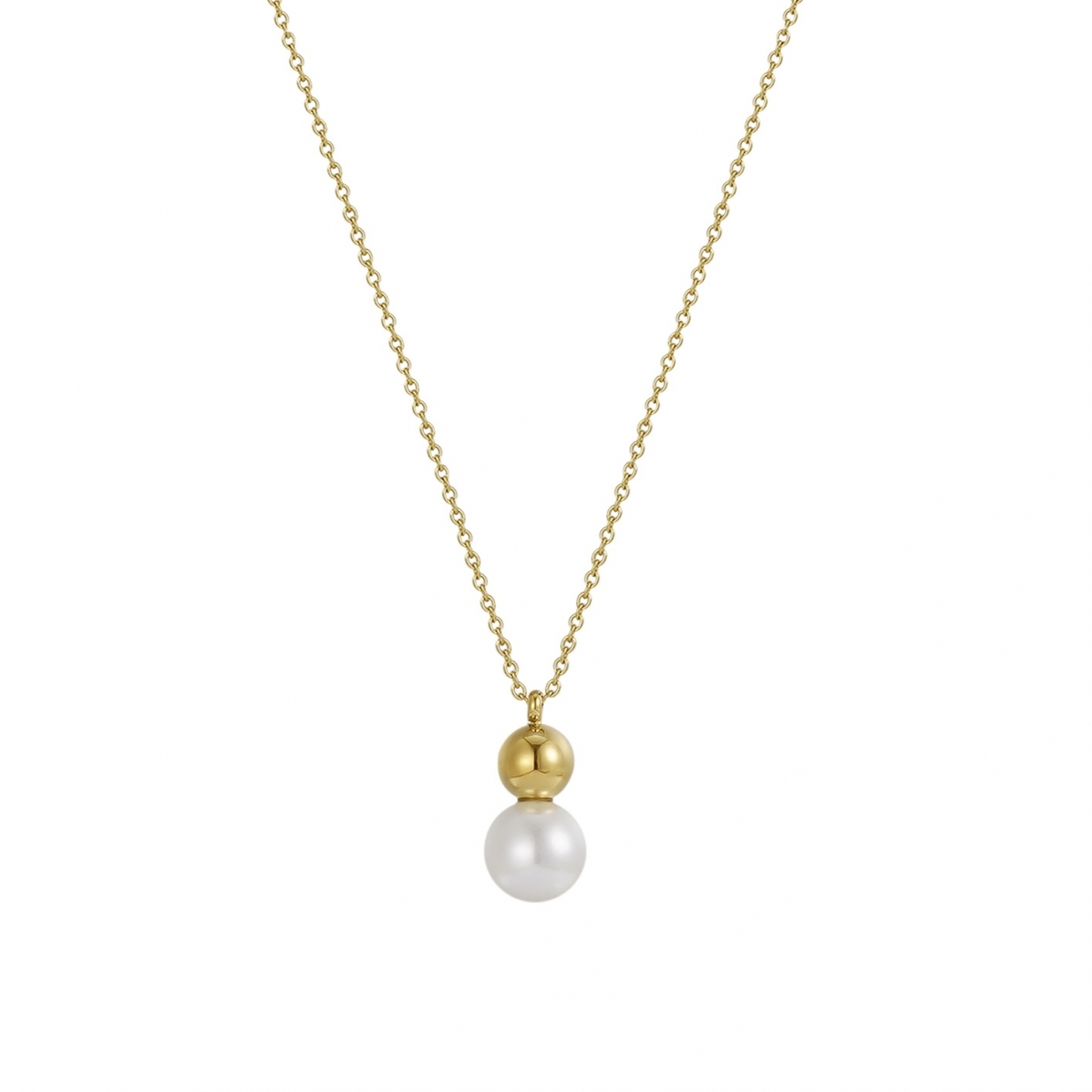 Timeless necklace combining a polished round bead with a classic pearl. The clean, minimal design creates a sophisticated look—perfect for both everyday wear and special occasions.