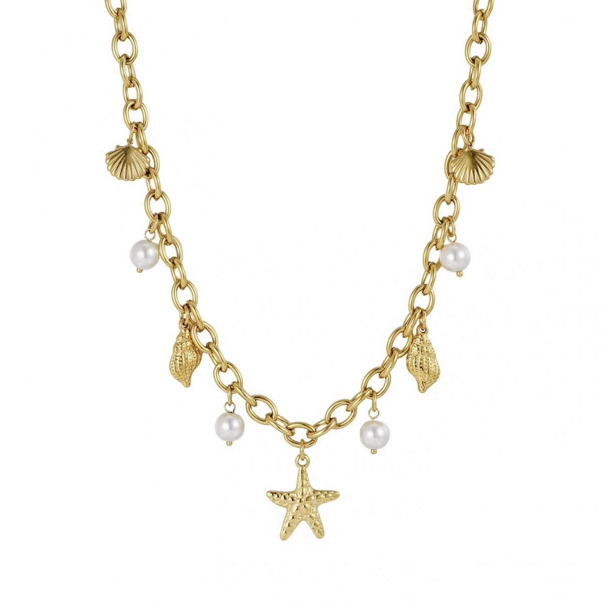 A summery and trendy necklace with charms inspired by the ocean. A beautiful mix of seashells and pearls creates a piece with true beach vibes.